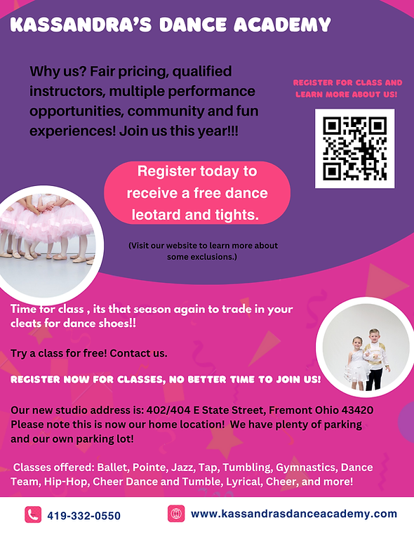 At Kassandra’s Dance Academy, dance is a life-enriching journey of individual well-being for all ages, backgrounds and levels. The goal is to educate and inspire two different kinds of character. We aspire to assist students with acquiring dance/movement skills, poise, creativity, and confidence to perform. First, and most important, is personal character. This includes discipline, determination, confidence, creativity and respect for oneself and others. Second, is the character that can captivate an audience with a one of a kind talent. We are athletes and artists of the body mind and soul.